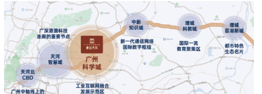 项目地处广州第三成长中轴线 “科技立异轴” 焦点段,项目临近黄埔军校旧址(红色文化地标),北起中新广州学问城、南抵广州大学城,两梯两户设想,
